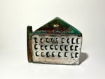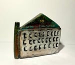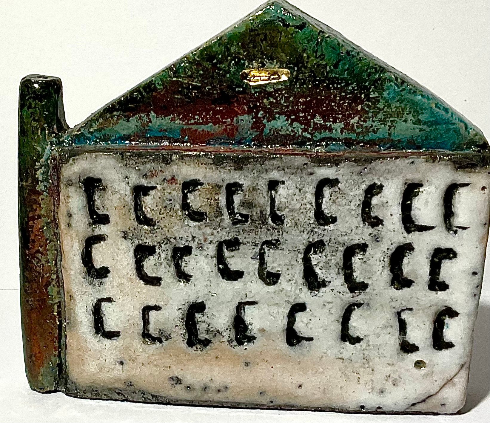 The Hotel has been glazed with specialist Raku glazes in copper and white / cream colours , and has been fired in an outside kiln.