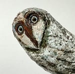 My new Owl sculptures are a series of 12, all slightly different in their appearance and stance. This one is number 11, he stands on an oak base which has been hand painted in a blue grey matt paint. He measures 21 cm tall x 12 cm at his widest.